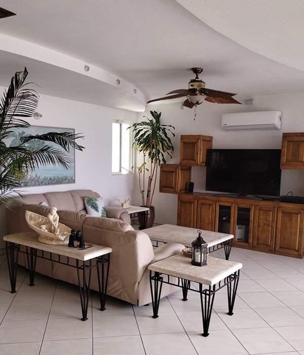 The upstairs villa features 5 bedrooms and 4.5 bathrooms, including a spacious master suite with a luxurious soaking tub. It offers a large entertainment living room, dining area, and a full kitchen with an open floor plan. Each of the 5 bedrooms is beautifully maintained, with comfortable linens and décor designed by a local professional.